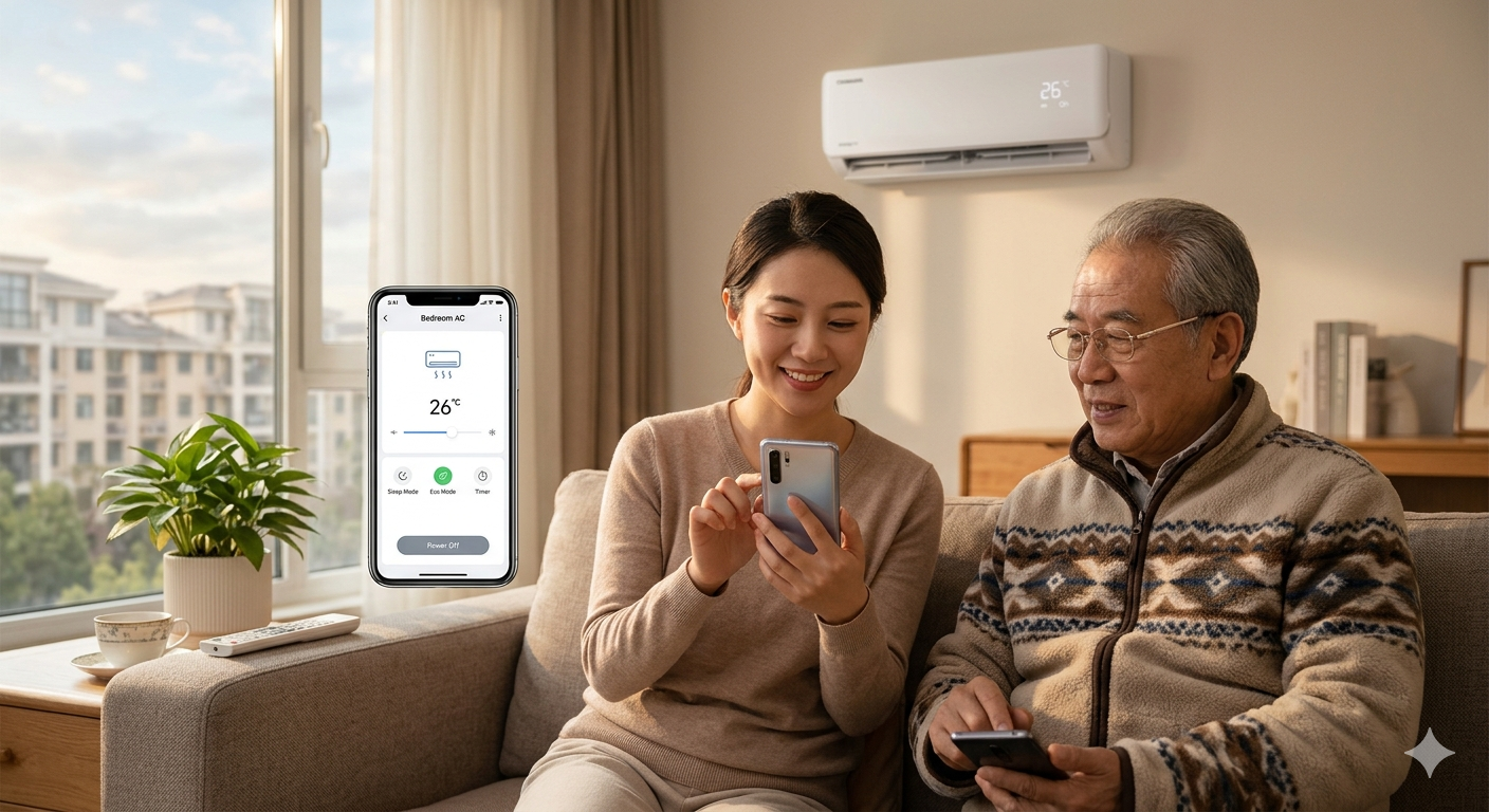 所有机型支持长虹智慧家APP/微信小程序远程操控,可一键设置全屋卧室空调模式、温度,外出可远程关闭,老人小孩也能轻松操作。